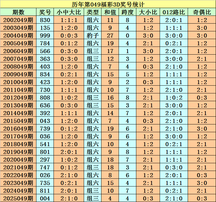 在积年同时开奖中,豹子开出1次,组三出现7次,组六开出16次,组六轮空2年,本年同时重防组六出现。