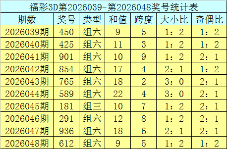 上期追忆:福利彩票3D第2026048期奖号为612。